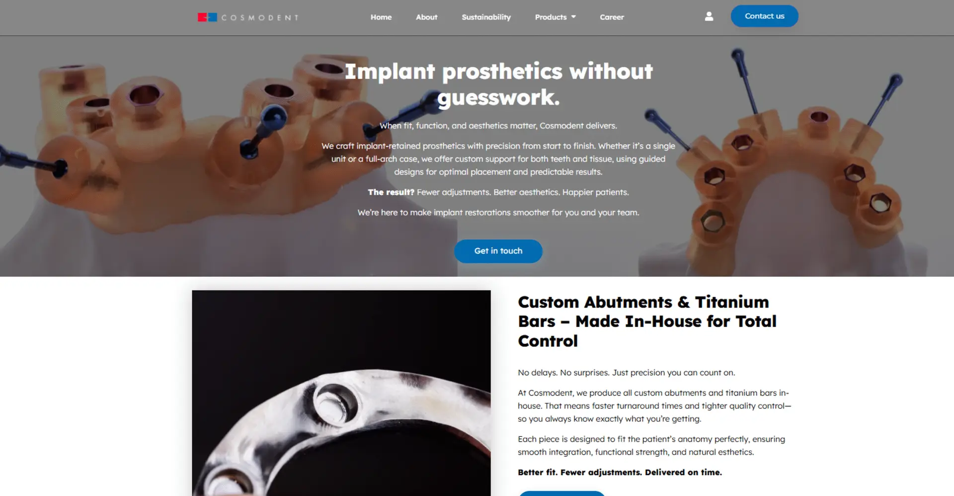 Despite a strong reputation offline, Cosmodent’s website didn’t reflect its premium positioning. Pages loaded slowly, case proof and certifications were hard to find, and the contact/quote flow created friction-leading to missed enquiries. Mobile UX was dated, search visibility for high-intent terms (e.g., “dental lab Sweden,” “implant restorations lab”) lagged, and there was limited tracking to show where potential clients dropped off. In short: the craft was world-class; the site wasn’t converting like it.