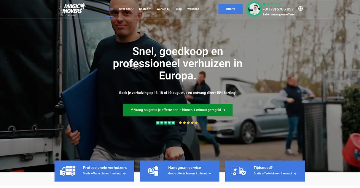 Magic Movers had built a name offline, but their online presence told a different story. The outdated website lacked professionalism, hurting trust and conversion rates. Slow load times frustrated visitors, while poor SEO performance meant they were missing out on high-intent leads searching for moving services. The site wasn’t optimized for mobile, making it harder for potential customers to request quotes on the go. Without a conversion-focused design and clear calls to action, they were leaving valuable inquiries on the table – and competitors were capitalizing.