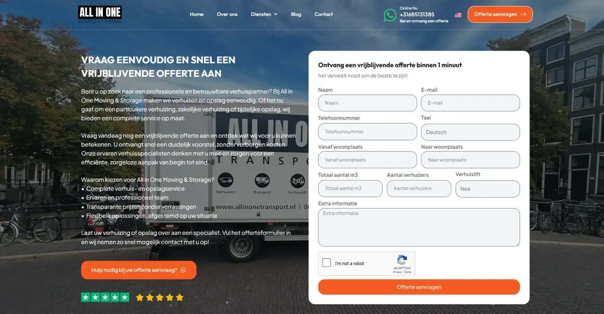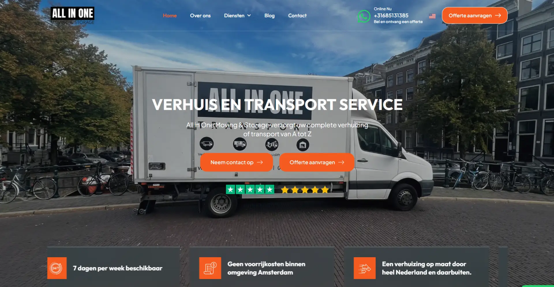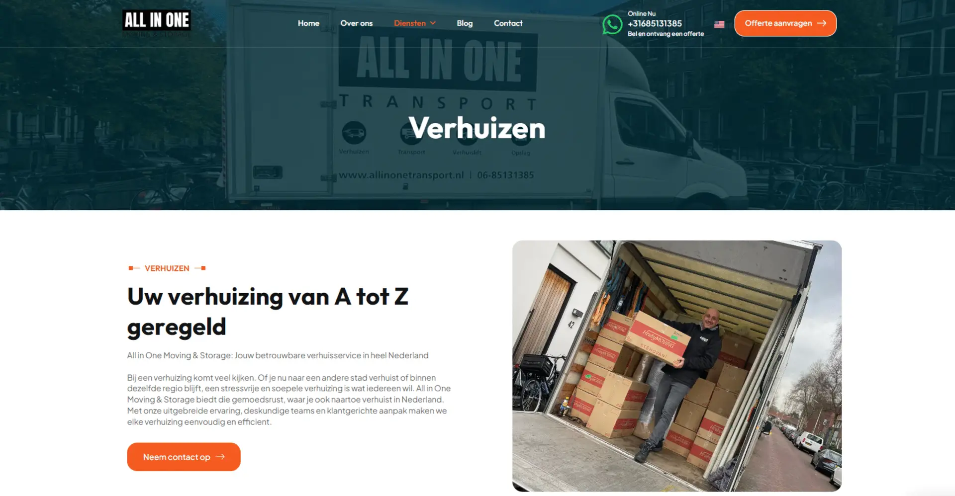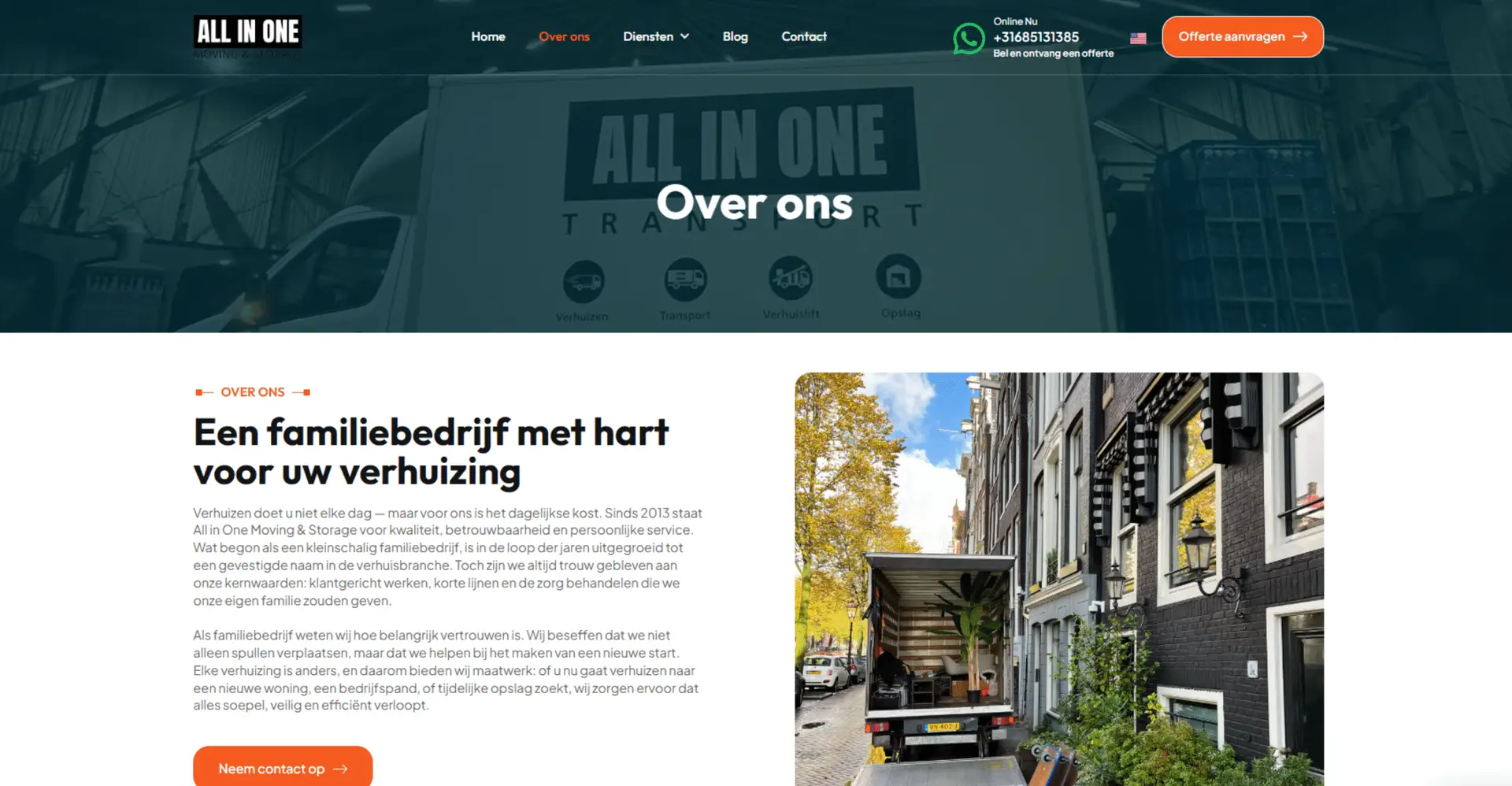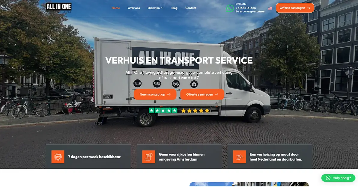 All In One Moving & Storage er vokset fra en lille familievirksomhed til et betroet regionalt navn. De håndterer bolig- og erhvervstransporter, opbevaring og skræddersyede tjenester med den omhu, de ville give deres egen familie. For at følge med væksten havde de brug for en digital oplevelse, der matchede deres servicekvalitet og omsatte flere hjemmesidebesøg til bookede transportopgaver.